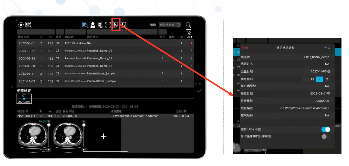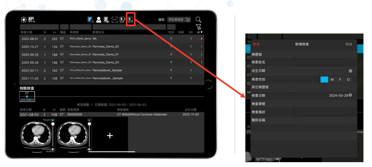 2. 移动调阅: 医师只需使用另一台安装有UDE App的iPad,即可无线连接至 服务器iPad,随时随地调阅、浏览、分析所需的任何影像。