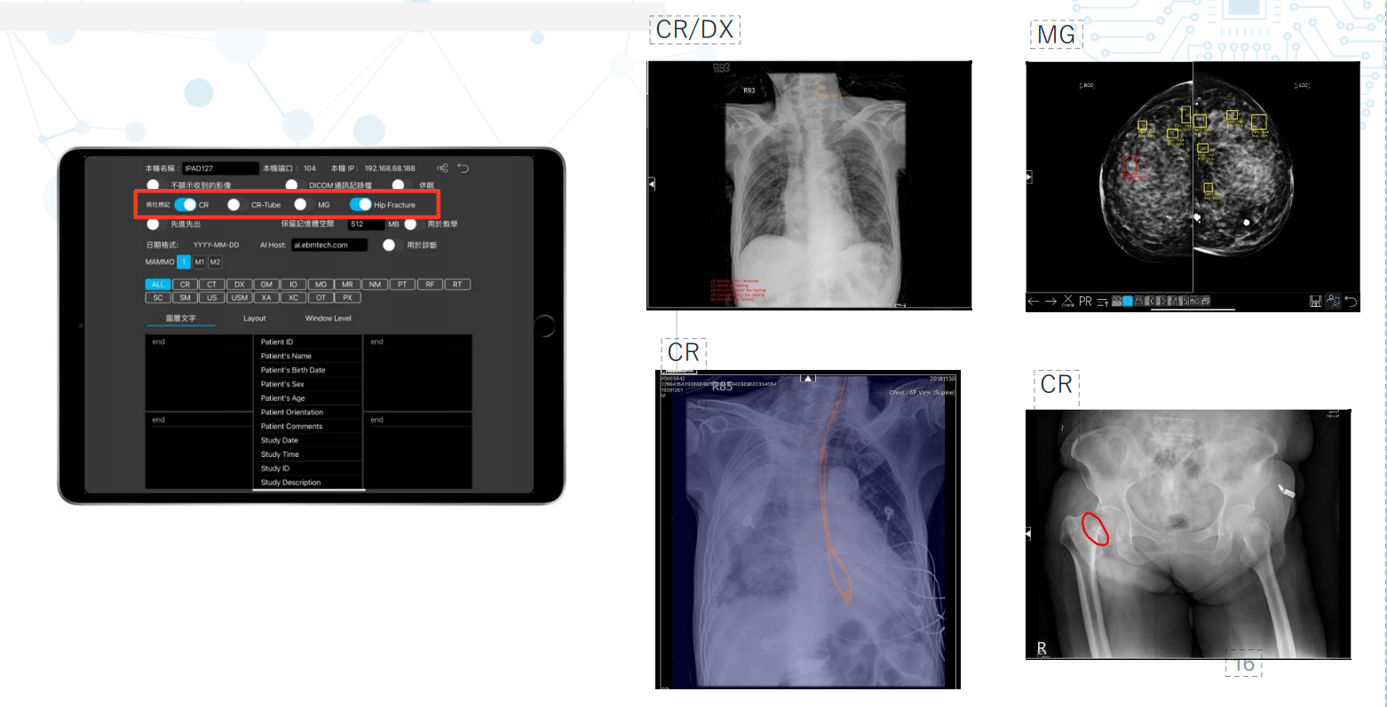 1. 储存中枢: 放射科设备产生的DICOM影像,通过标准通讯协议,直接传输至作为服务器(iPad Server) 的平板电脑中。单台iPad即可提供高达1TB的安全存储空间,轻松管理海量影像资料。