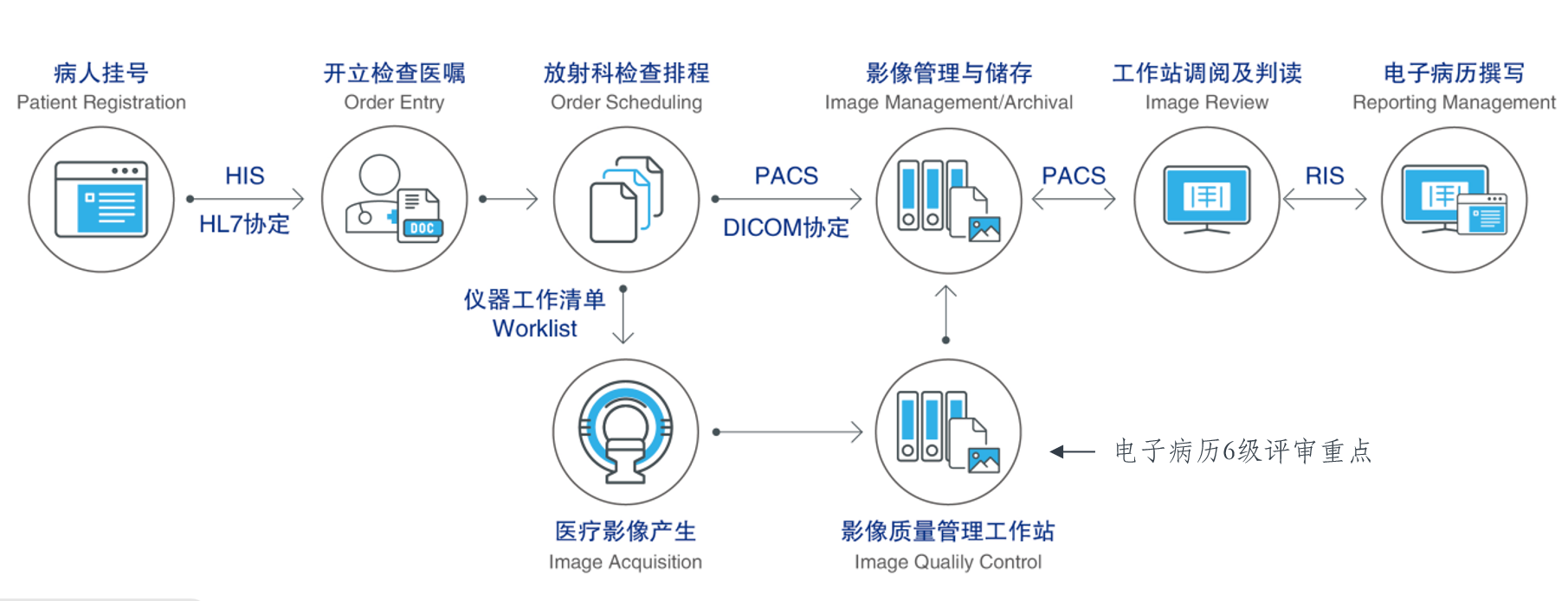 · 与RIS系统:二者深度融合,共同管理患者从预约、登记、分诊、检查到报告、审核的完整工作流。